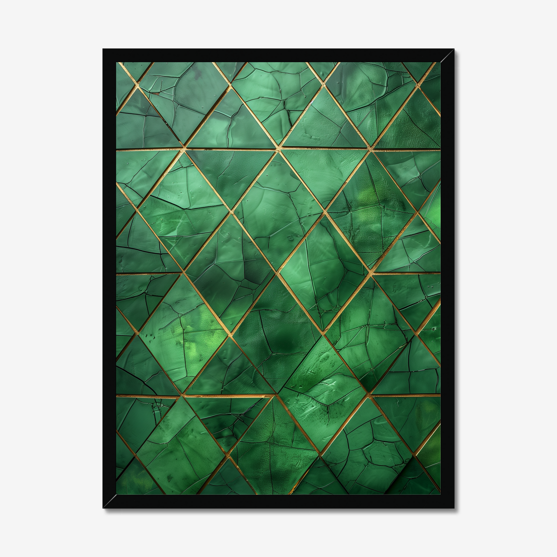 Where the chaos of nature meets the order of mathematics. This design takes the organic cracked texture of emerald stone and forces it into a strict, golden triangular grid. A modern, minimalist take on the Art Deco tradition.